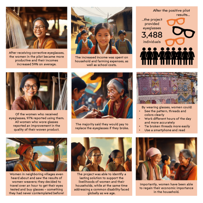 View the full cartoon above, which provides a visual example of how better vision is helping boost incomes for women and their families in rural Laos.